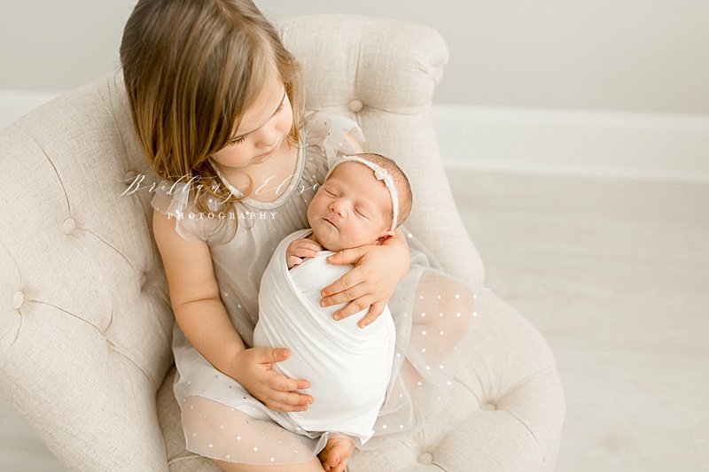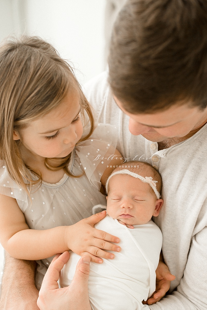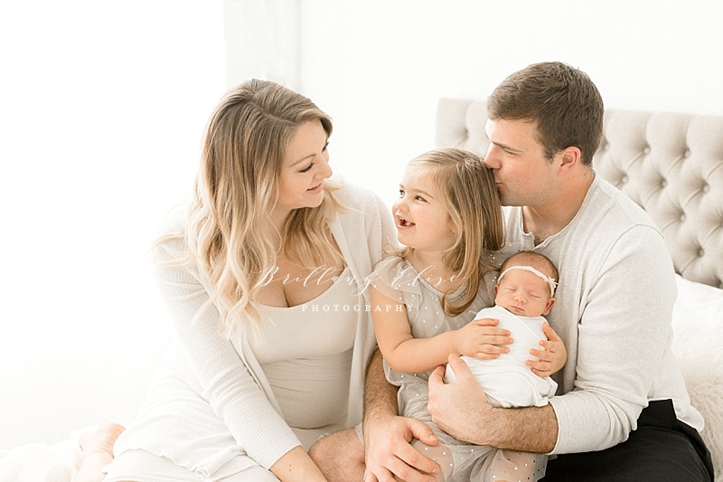 It was so nice to have the Bass family in the studio! Little Riley was joined by her mom, dad, and big sister, Payton. Seeing the four of them snuggle together was so great! It’s so fun to capture moments like that. Payton is two years old, and loves her little sister to death. These two siblings are simply precious, and I couldn’t help but to say “aww” as I was looking back at the photos. When Payton held Riley, it was one of the most precious moments ever. Swoon!