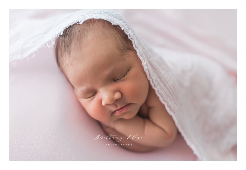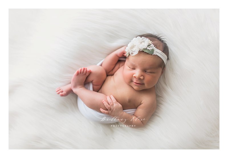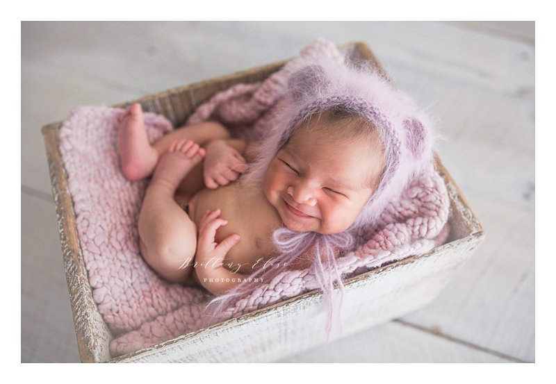 We captured Lily in pale pinks and whites for her Tampa Newborn Session. She was a patient and cooperative subject, sleeping through the majority of the session. She was easy to pose and did not mind being swaddled and dressed in different outfits. In other words, a photographer’s dream! My favorite part from this session when looking back was her enormous smile. And just look at that bear ear cap! It was absolutely precious on her.